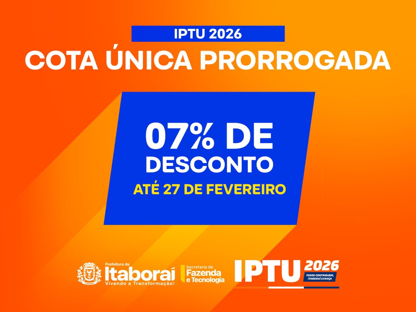 IPTU 2026: Prefeitura de Itaboraí prorroga prazo da cota única com 7% de desconto
