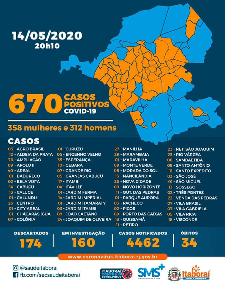 Atenção para mais uma atualização sobre os casos do novo coronavírus em Itaboraí (14/05)