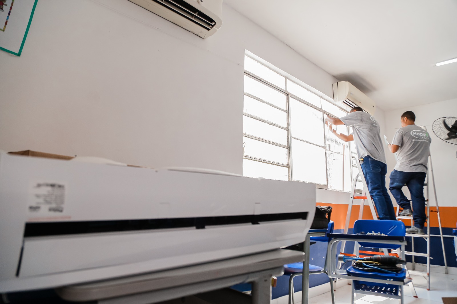 Em fase de viver a transformação construída ao longo dos últimos quatro anos, a Prefeitura está avançando com a climatização das unidades escolares, garantindo mais conforto para alunos e professores. O município receberá mais de 2 mil novos aparelhos de ar-condicionado, reforçando o compromisso com um ambiente de ensino mais adequado. A instalação dos equipamentos acontece após negociação com a concessionária de energia Enel para solucionar a falta de capacidade de carga elétrica em algumas escolas.