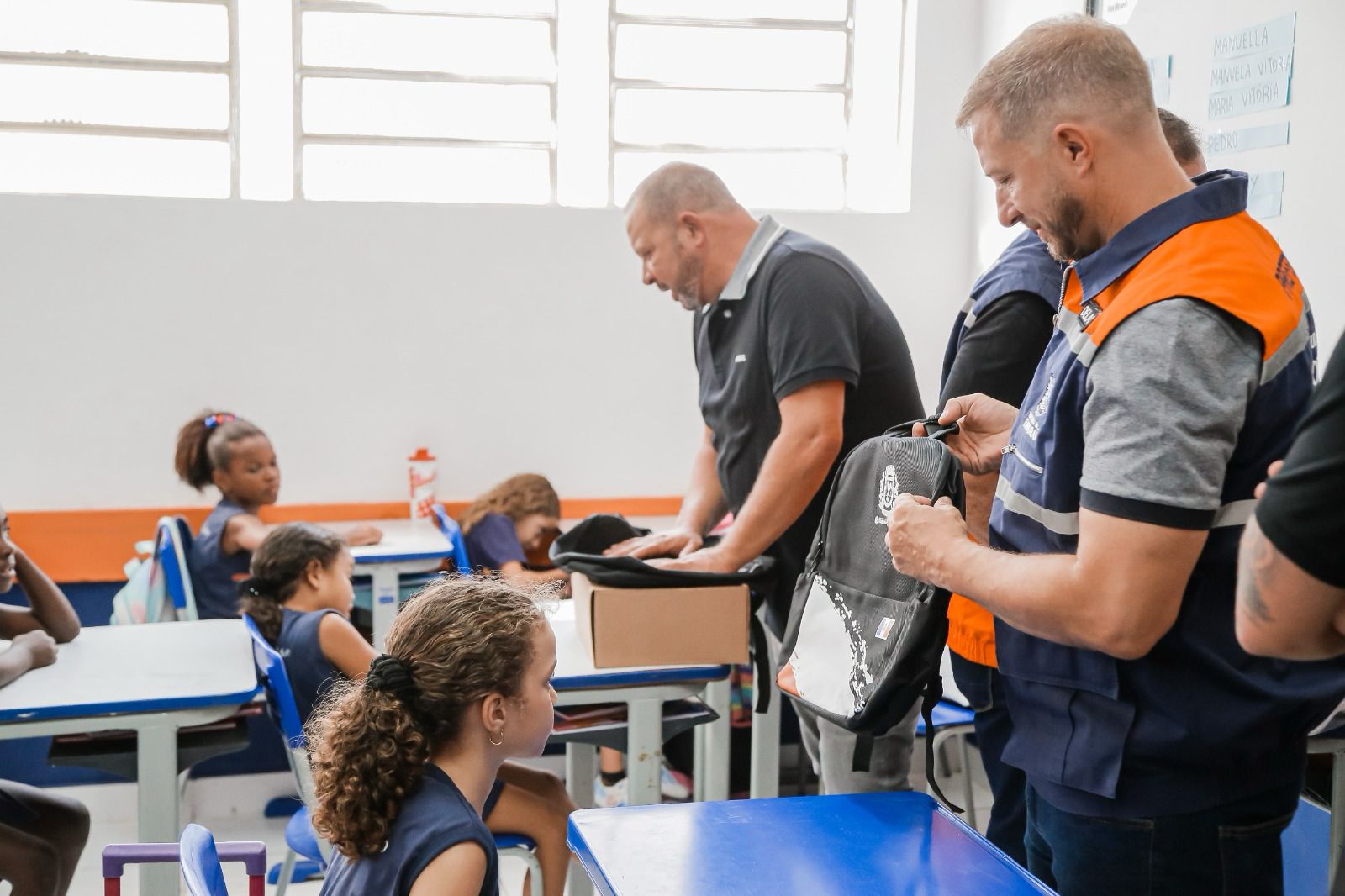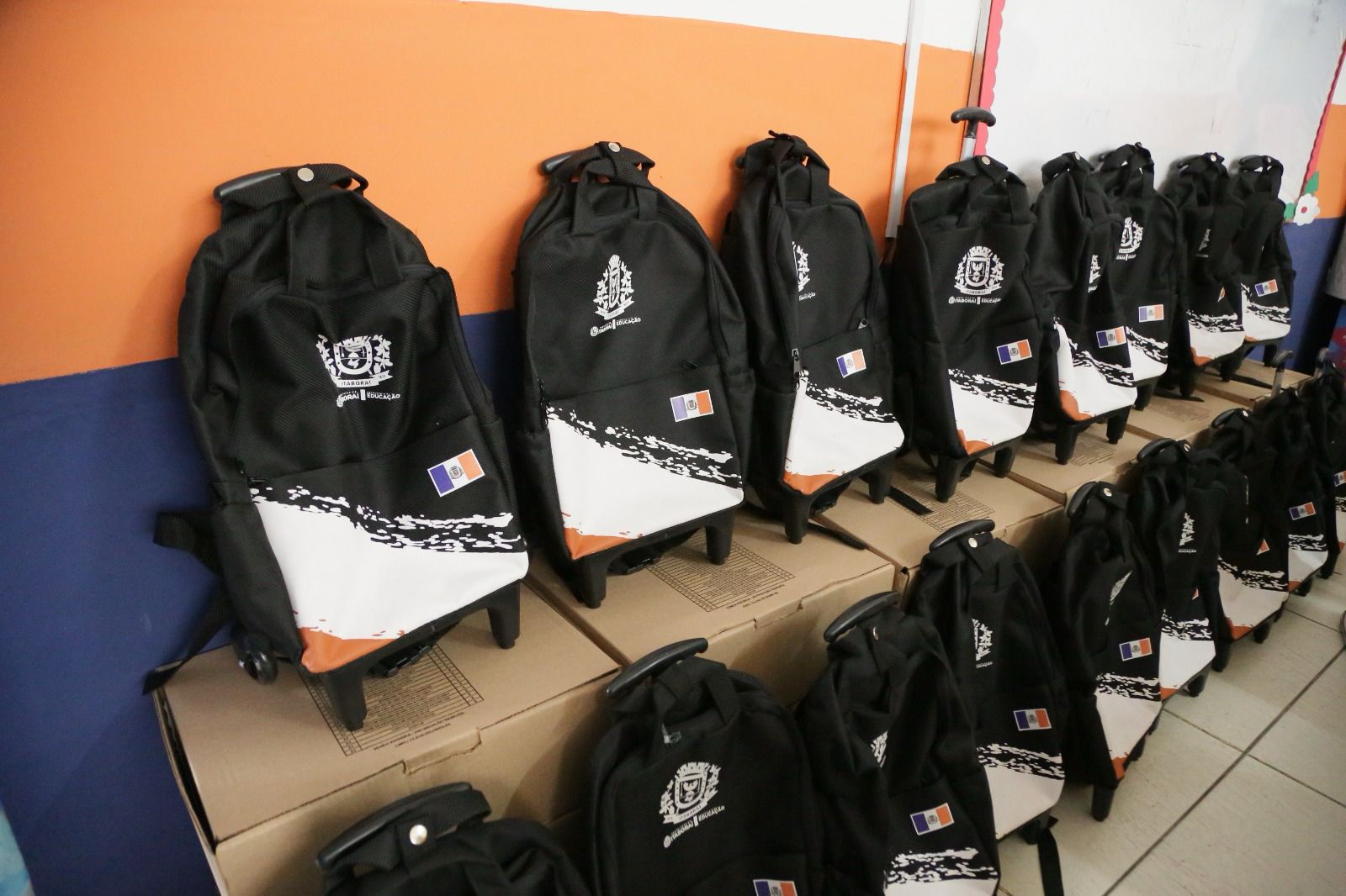 A entrega total dos materiais escolares contempla estudantes da Educação Infantil, Ensino Fundamental I (1º ao 5º ano), Ensino Fundamental II (6º ao 9º ano) e da Educação de Jovens e Adultos (EJA). Os kits incluem mochilas adequadas para cada faixa etária, estojos, cadernos, materiais de escrita e itens específicos para cada segmento, como esquadros, transferidores e compassos para os alunos do Ensino Fundamental II e EJA.