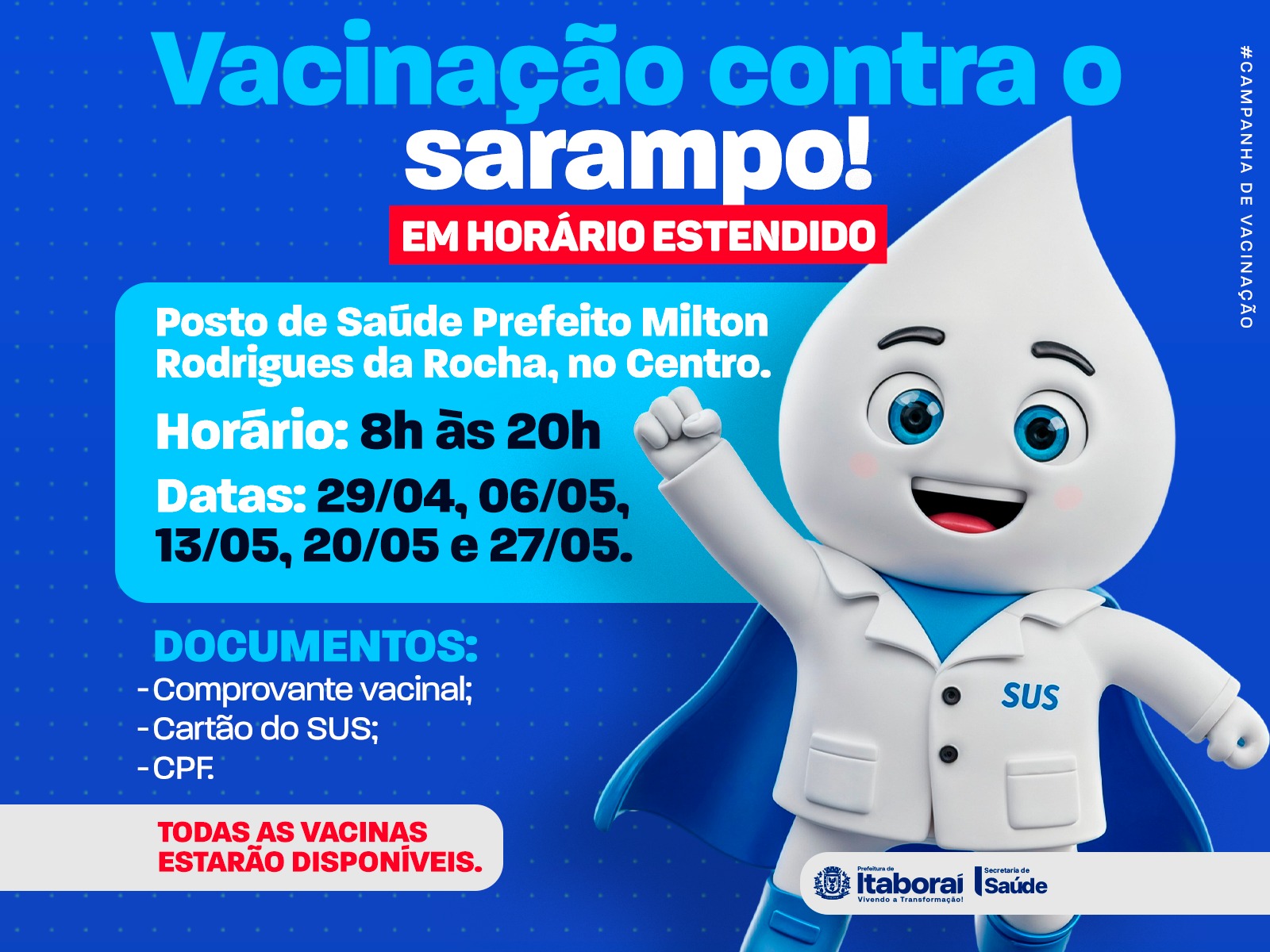 Posto de Saúde Milton Rodrigues terá sala de vacinação aberta à noite em apoio à campanha contra o sarampo em Itaboraí