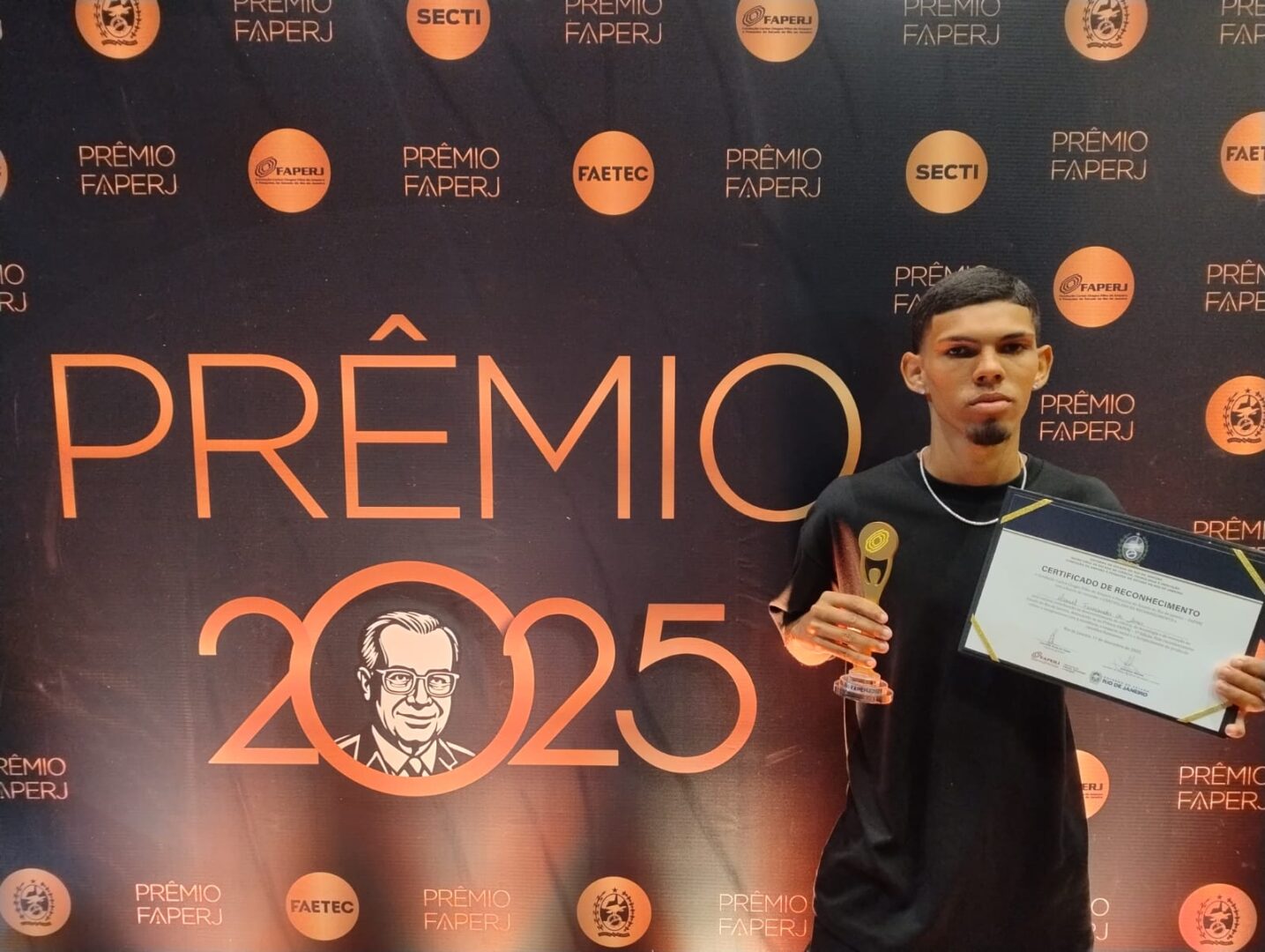 O município de Itaboraí tem mais um motivo para se orgulhar. O aluno Daniel Assis, de 17 anos, estudante do 2º ano do ensino médio do Colégio Estadual Visconde de Itaboraí, conquistou o 3º lugar na categoria Jovens Talentos do Prêmio FAPERJ de Ciência, Inovação e Reconhecimento – Destaques do Rio de Janeiro (1ª Edição – 2025). A cerimônia foi realizada na última quinta-feira (11/12), na Sala Cecília Meireles, na Lapa, Rio de Janeiro.