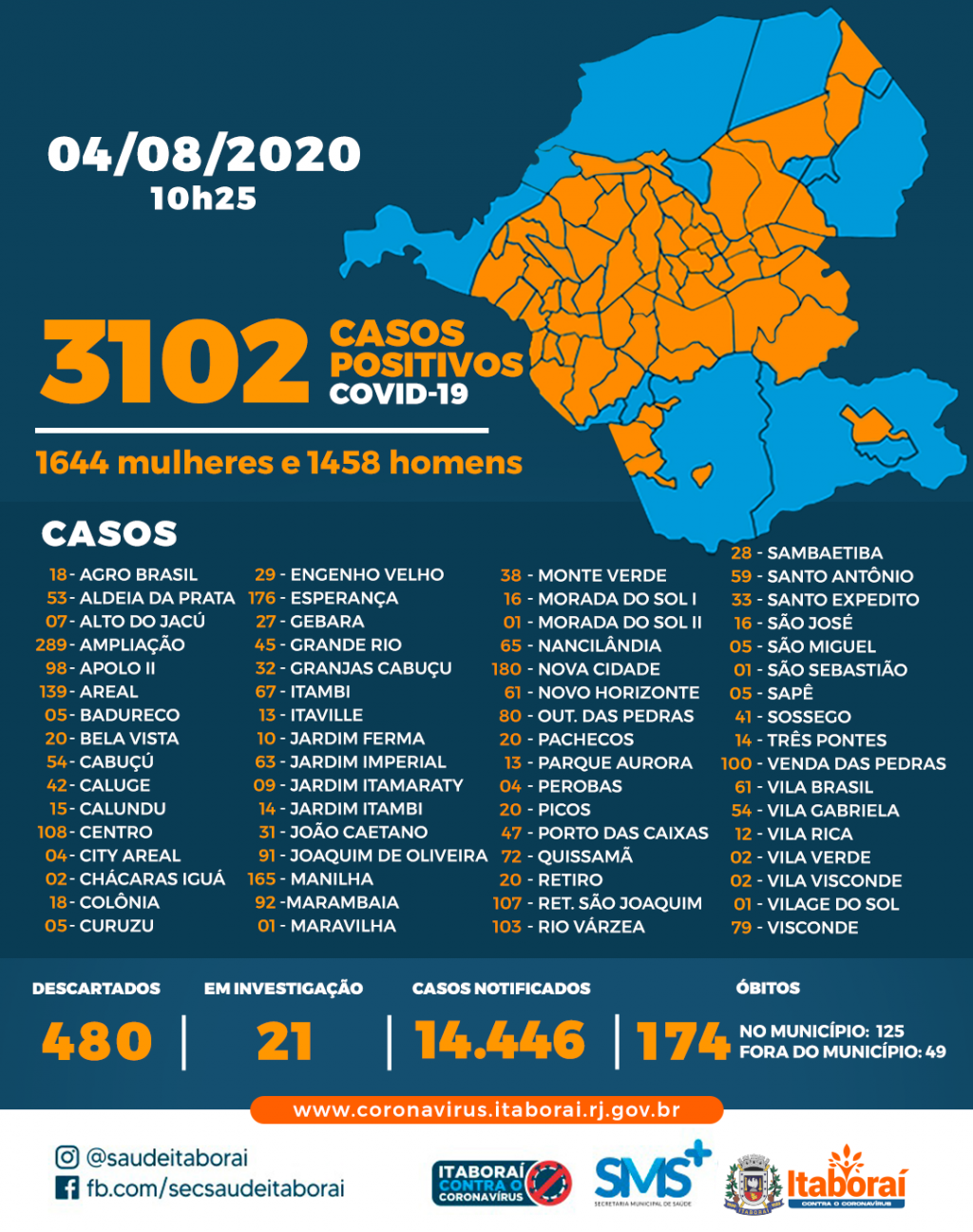 Atenção para mais uma atualização sobre os casos do novo coronavírus em Itaboraí (04/08)