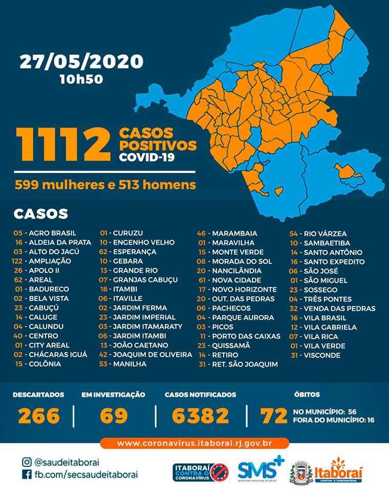 Atenção para mais uma atualização sobre os casos do novo coronavírus em Itaboraí (27/05)