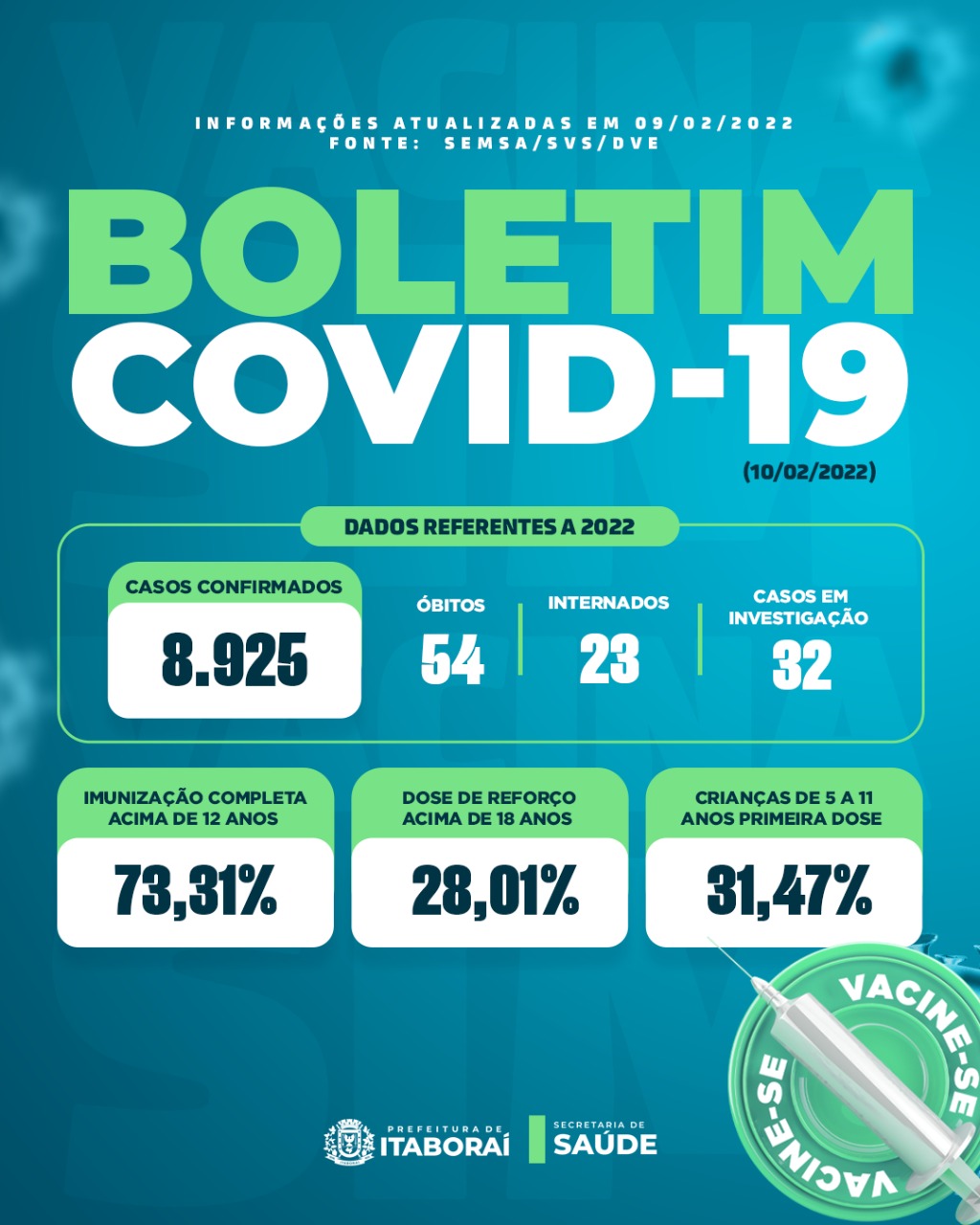 Atualização de dados da Covid-19 (10/02/22)