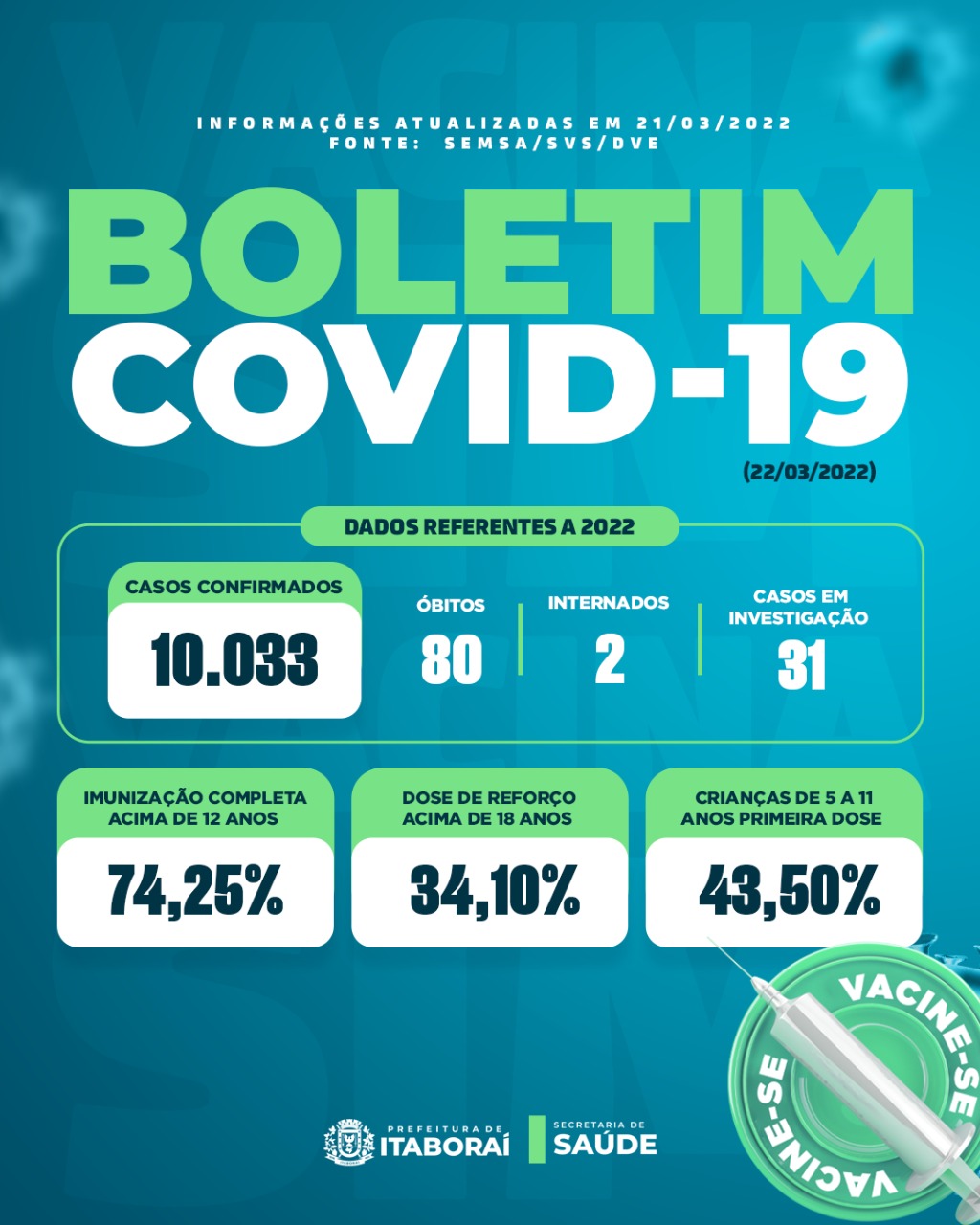 Atualização de dados da Covid-19 (22/03/22)