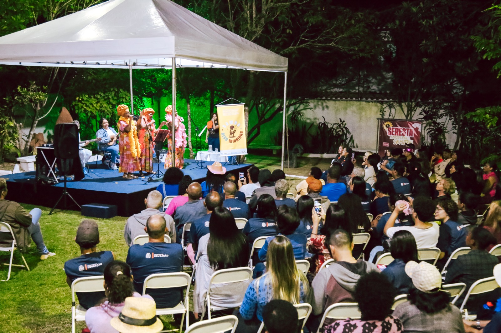 A Casa de Cultura Heloísa Alberto Torres (CCHAT), em Itaboraí, foi palco na noite da última terça-feira (26/08) da estreia do espetáculo “Samba Nego Miudinho”, projeto itinerante do Museu do Samba que une música, contação de histórias e instalação artística interativa. O evento reuniu alunos do Ensino para Jovens e Adultos (EJA), das escolas municipais Promotor Luiz Carlos Caffaro, Professora Maria Ana Moreira e Marly Cid Almeida de Abreu. Além de moradores da cidade, em uma noite marcada por emoção, aprendizado e celebração da cultura negra.