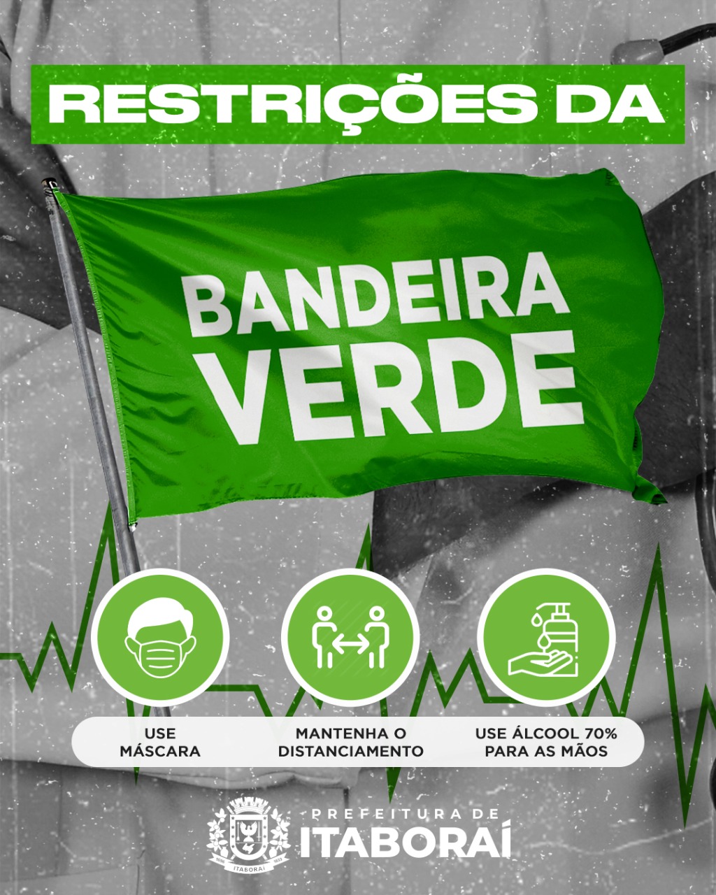 Com a bandeira verde, as atividades retomadas (lojas de rua, centros comerciais, feiras, comércio ambulante, atividades desportivas ao ar livre, academias e templos religiosos) estão autorizadas a funcionar desde que respeitando os protocolos de ambiente. Eventos com público ficam liberados desde que respeitem as restrições da vigilância sanitária. Escolas e universidades retornam às aulas presenciais de acordo com o plano de retomada de atividades presenciais da Secretaria Municipal de Educação.