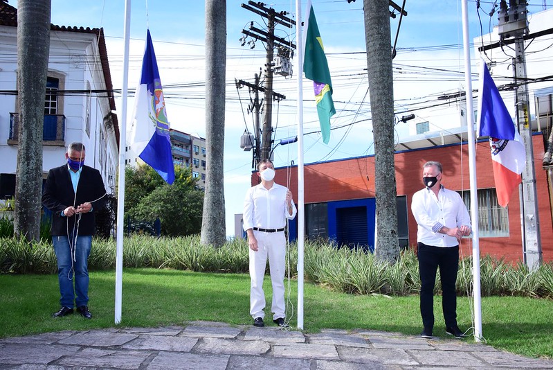49922801476_161dec6e9a_cNos 187 anos de emancipação político-administrativa de Itaboraí, uma pequena cerimônia foi realizada em frente a Prefeitura, na Praça Marechal Floriano Peixoto, no Centro. As bandeiras nacional, estadual e municipal foram hasteadas e ficaram a meio mastro, devido ao luto de três dias decretado em respeito às vítimas do Covid-19, no município.
