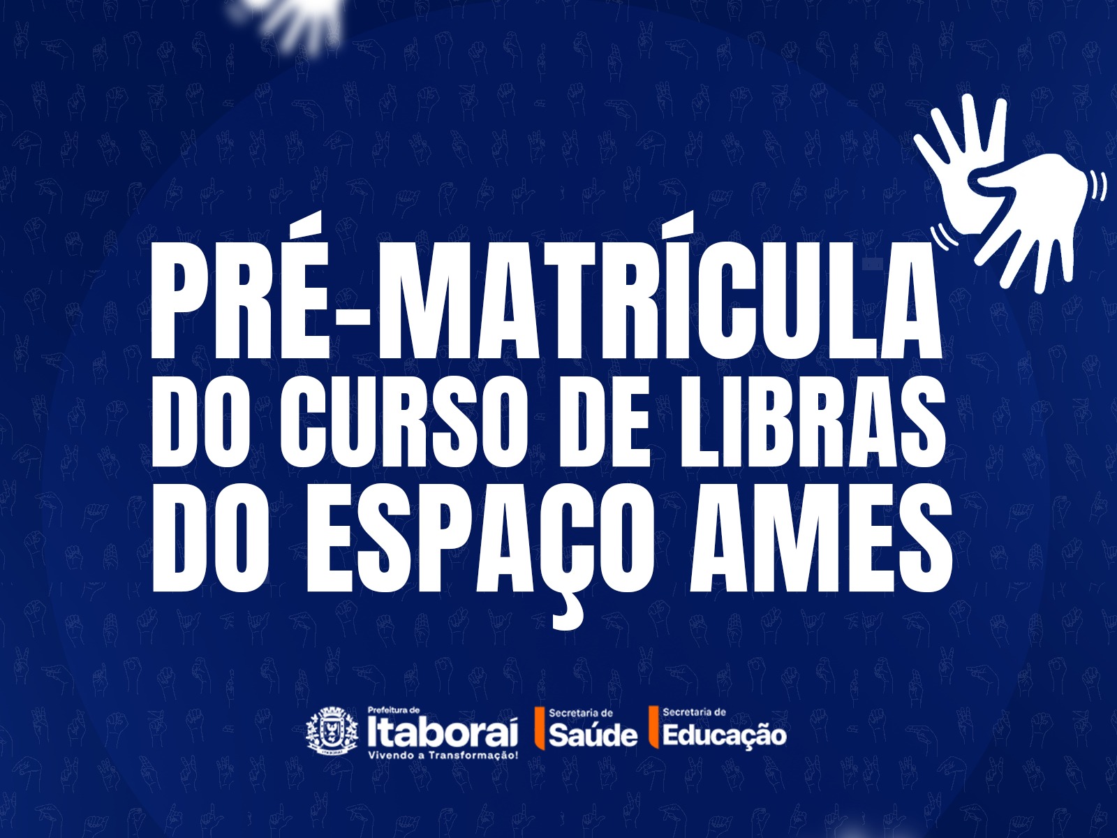 A Prefeitura de Itaboraí, por meio da Secretaria Municipal de Educação (SEMED), abre, na próxima terça-feira (01/07), a pré-matrícula para o curso gratuito de Libras (Língua Brasileira de Sinais), oferecido pelo Espaço de Atendimento Multidisciplinar em Educação e Saúde (AMES). A inscrição poderá ser feita exclusivamente pela internet, das 8h às 17h, através do site matricula.itaborai.rj.gov.br/ames.