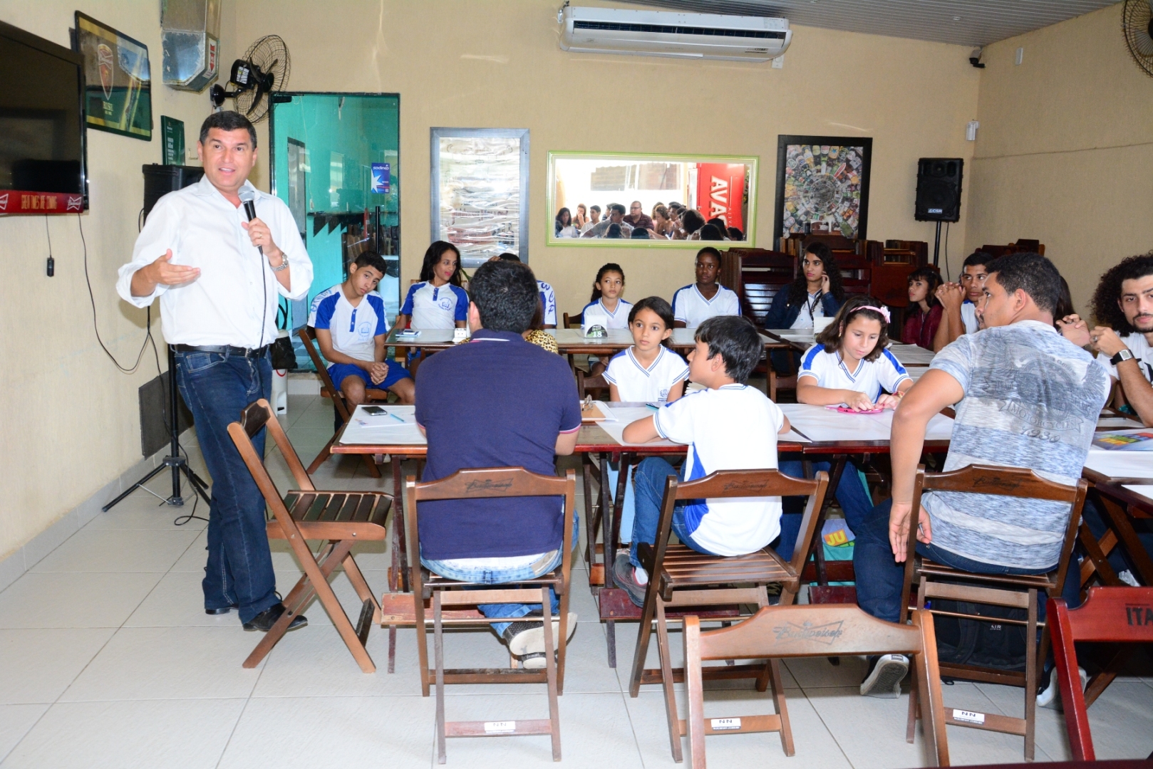 “Tradicionalmente, tomamos um café da manhã no salão nobre prefeitura. Hoje, tive algumas reuniões que exigiram a minha presença. Mas fiz questão de comparecer ao encontro com os estudantes, para passar a posição do nosso município e ouvir o que eles tinham a dizer, o que sempre é muito produtivo”, disse o prefeito, ao lado de Susilaine Duarte, secretária de Educação e Cultura, que foi a convidada desta edição.