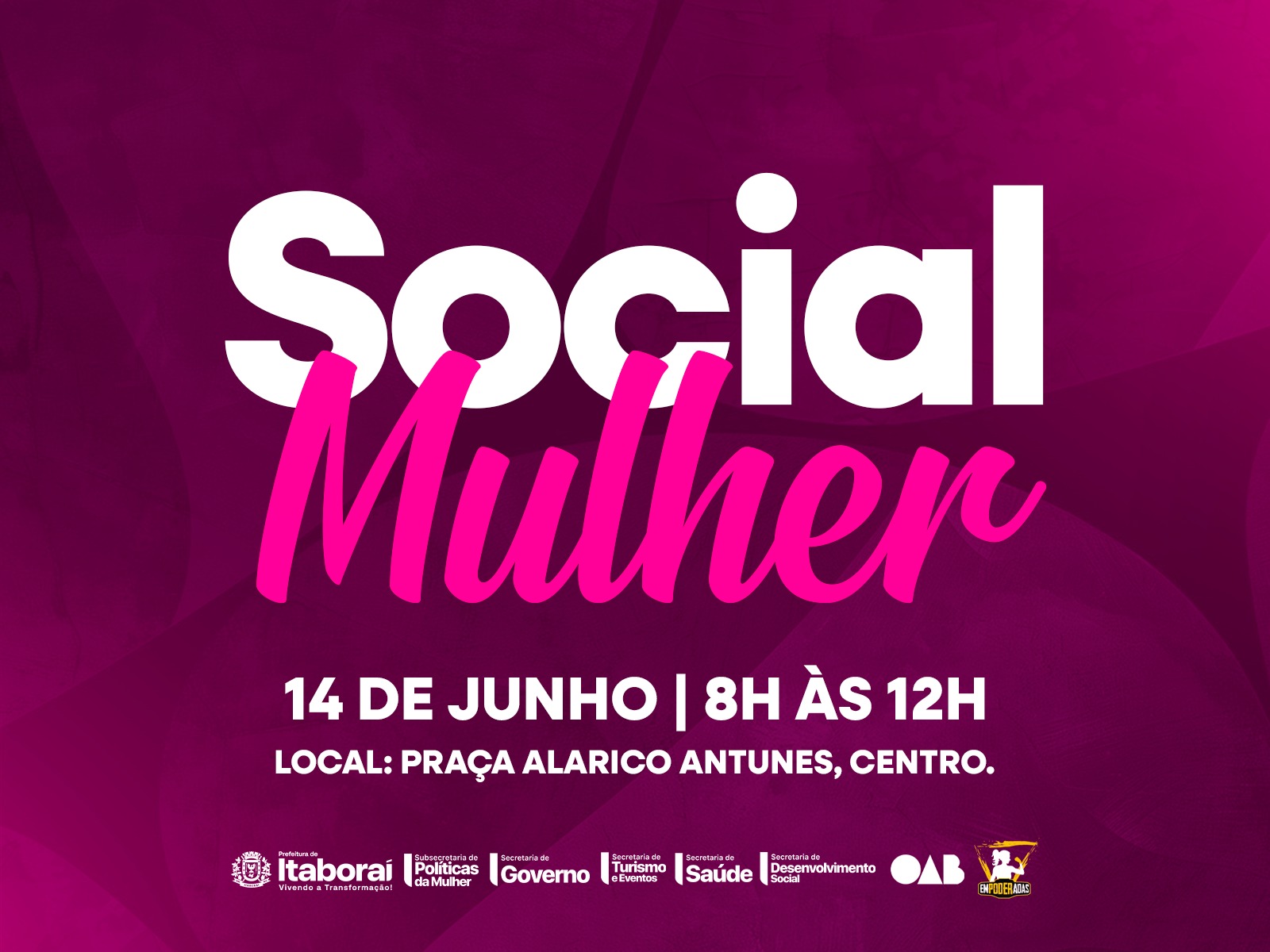 A Prefeitura de Itaboraí, por meio da Subsecretaria de Políticas da Mulher, promoverá neste sábado (14/06), das 8h às 12h, o evento “Social Mulher”, na Praça Alarico Antunes, no Centro. A iniciativa tem como objetivo oferecer serviços gratuitos voltados ao bem-estar, à saúde e ao fortalecimento dos direitos das mulheres, além de proporcionar momentos de cuidado e valorização feminina.
