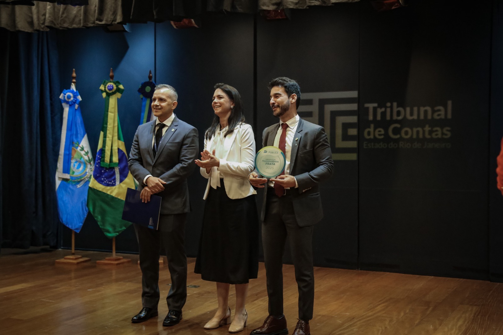 A Prefeitura de Itaboraí recebeu oficialmente na última quinta-feira (11/12), durante cerimônia realizada no Tribunal de Contas do Estado do Rio de Janeiro (TCE-RJ), o Selo Prata no Radar da Transparência Pública. O município foi representado pela Controladora-Geral, Angélica Rosa, em um evento que celebrou a evolução da gestão e o compromisso com a clareza e o acesso às informações públicas. A certificação, concedida pela Associação dos Membros dos Tribunais de Contas do Brasil (Atricon), reconhece o intenso trabalho de aprimoramento realizado pela Controladoria-Geral do Município (CGM) para garantir a qualidade e a navegabilidade do Portal da Transparência.