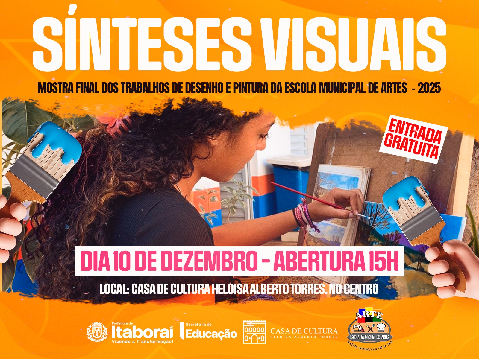 A Prefeitura de Itaboraí, por meio da Secretaria Municipal de Educação (SEMED), realizará na próxima quarta-feira (10/12), às 18h, a abertura da mostra “Sínteses Visuais”, exposição final dos trabalhos produzidos pelos alunos da Escola Municipal de Artes Professor Washington Luiz José da Costa, ao longo de 2025. O evento acontecerá na Casa de Cultura Heloísa Alberto Torres (CCHAT), no Centro, com entrada gratuita.