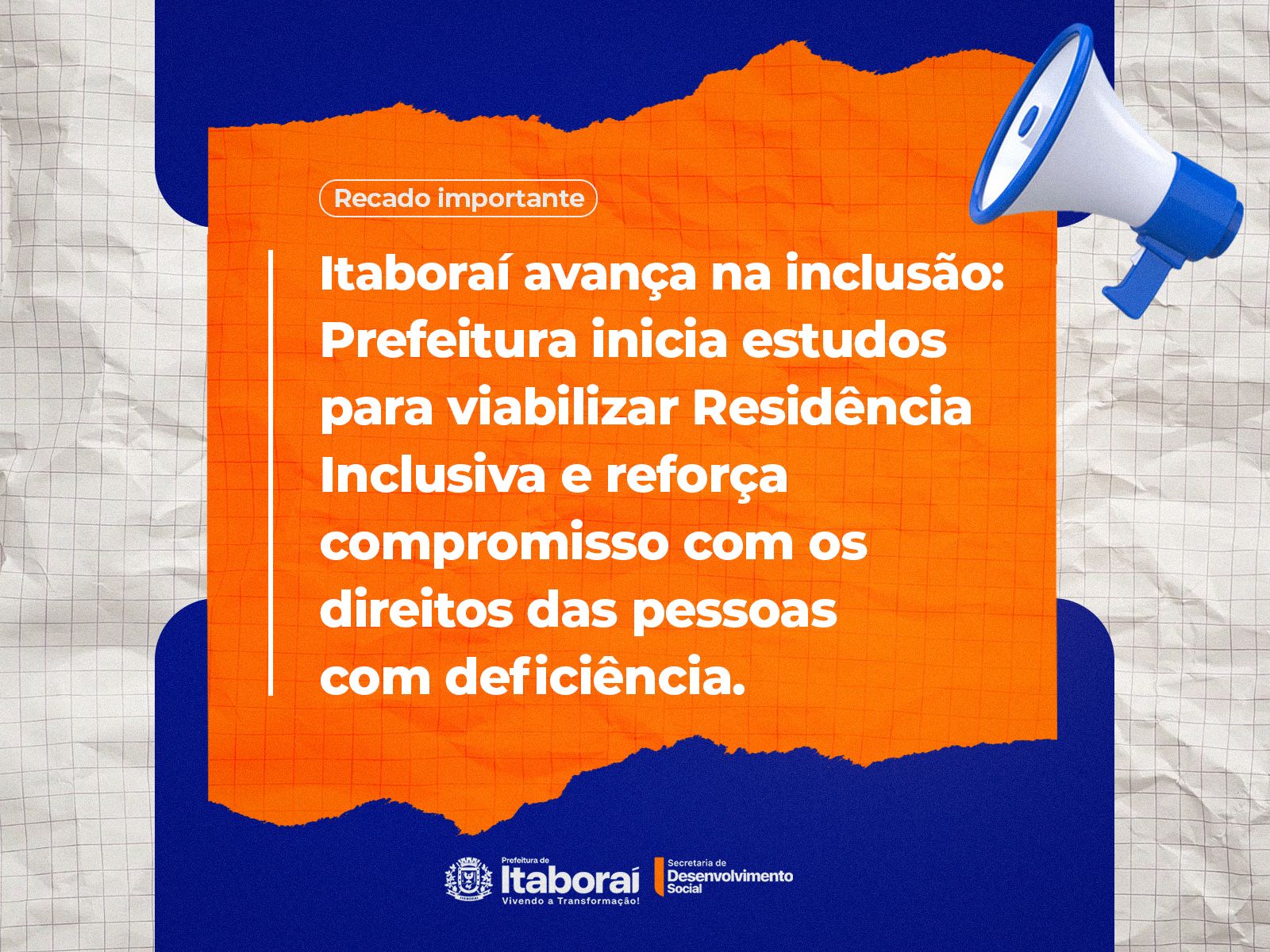 A Secretaria Municipal de Desenvolvimento Social de Itaboraí (SEMDS) mantém ações contínuas voltadas à inclusão e ao fortalecimento da rede de proteção às pessoas com deficiência, atuando de forma articulada com os demais órgãos do Sistema Único de Assistência Social (SUAS).