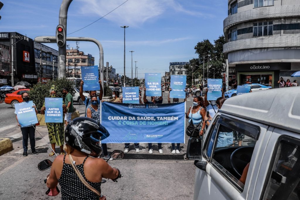 Com o objetivo de conscientizar sobre a prevenção ao câncer de próstata e alertar para os cuidados de saúde para o homem, a Prefeitura de Itaboraí, por meio da Secretaria Municipal de Saúde (SEMSA), realizou uma intervenção urbana, na manhã desta terça-feira (16/11), no Centro. A ação, que integra a programação da campanha Novembro Azul, teve intuito de levar informação a pedestres e motoristas na Avenida 22 de Maio.