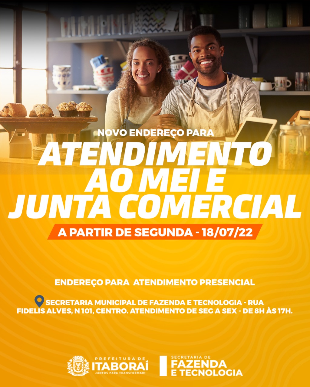 A partir desta segunda-feira (18/07), o atendimento ao Microempreendedor Individual (MEI) e a Junta Comercial do Estado do Rio de Janeiro (JUCERJA) será realizado nas dependências da Secretaria Municipal de Fazenda e Tecnologia de Itaboraí (SEMFAT), no Centro.