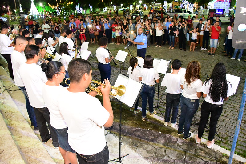 Na noite do último sábado (14/12), a escadaria da Paróquia São João Batista, na Praça Marechal Floriano Peixoto, no Centro, foi palco de uma apresentação dupla da Banda da Guarda Municipal de Itaboraí e dos alunos do projeto Educasom. As duas bandas tocaram músicas com tema natalino para um público que ainda pediu bis.