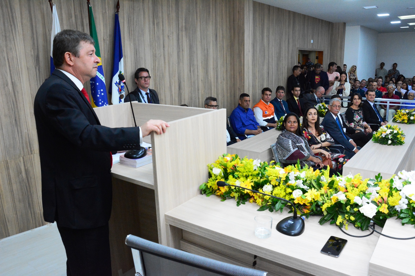 Casa cheia na sessão solene da Câmara de vereadores de ItaboraíO evento contou ainda com a presença dos vereadores, Marcos Araújo, Bil, Joana Lage, Paulo Alves, Elber Correa, Agnaldo Coutinho, Renato Garcia, Roberto Costa, Eneas, Rogério Filgueiras e Paulo Ney. Além dos secretários municipais de Governo e chefe de Gabinete, Jorge Antônio Dias; de Habitação e Políticas Sociais, Monica Virgilio; de Planejamento, José Fernando Soares; de Segurança e Defesa Civil, Luiz Alberto Mendonça; o controlador geral do município, Joaquim Gama e o procurador geral do município, Dr. Antônio Dias. E ainda o comandante do 35º Batalhão de Polícia Militar, o tenente-coronel Marcelo Henrique Guimarães, subsecretários municipais, autoridades e outros.