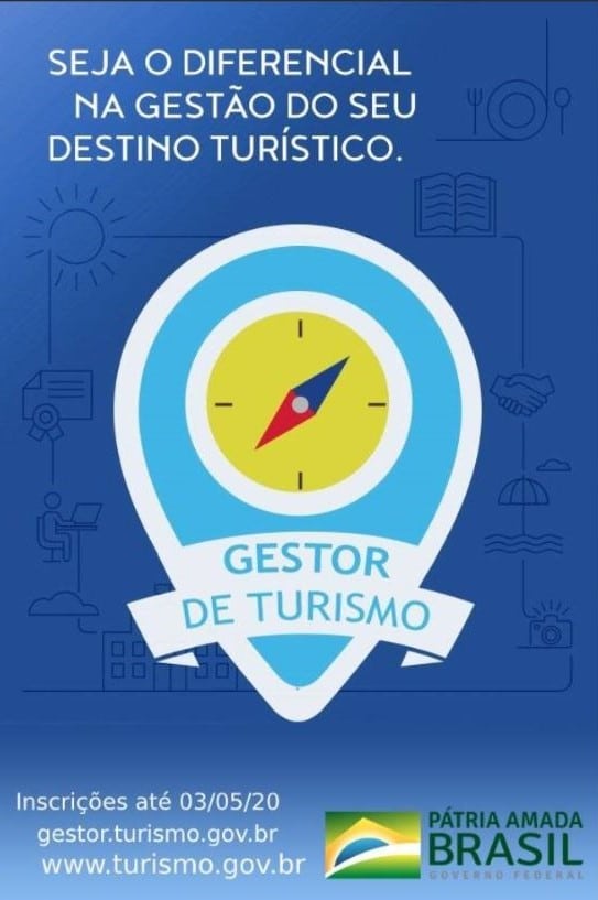 A Secretaria Municipal de Educação, Cultura e Turismo (Sectur), em parceria com o Ministério do Turismo está com inscrições abertas até o dia 3 de maio de 2020 para o “Curso Gestor de Turismo”. Para se inscrever, sendo maior de 18 anos, o acesso pode ser feito pelo link gestor.turismo.gov.br