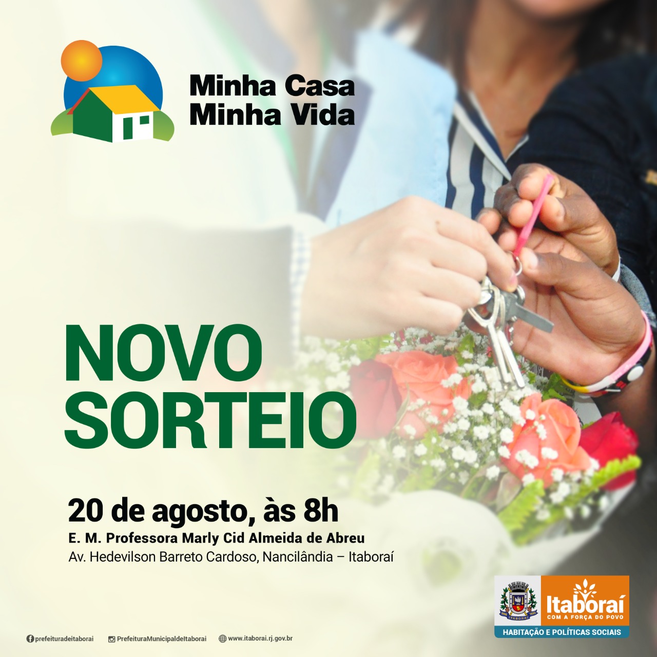 A longa espera pela casa própria pode também chegar ao fim para 600 moradores que estão inscritos no programa. Amanhã, terça-feira (20/08), será realizado o segundo sorteio do Programa Minha Casa Minha Vida, Loteamento Viver Melhor Itaboraí, no Bairro Esperança. O sorteio será realizado na Escola Municipal Marly Cid Almeida de Abreu, em Nancilândia, às 8h, onde 600 apartamentos serão contemplados. A entrega das chaves deverá acontecer no dia 20 de setembro.
