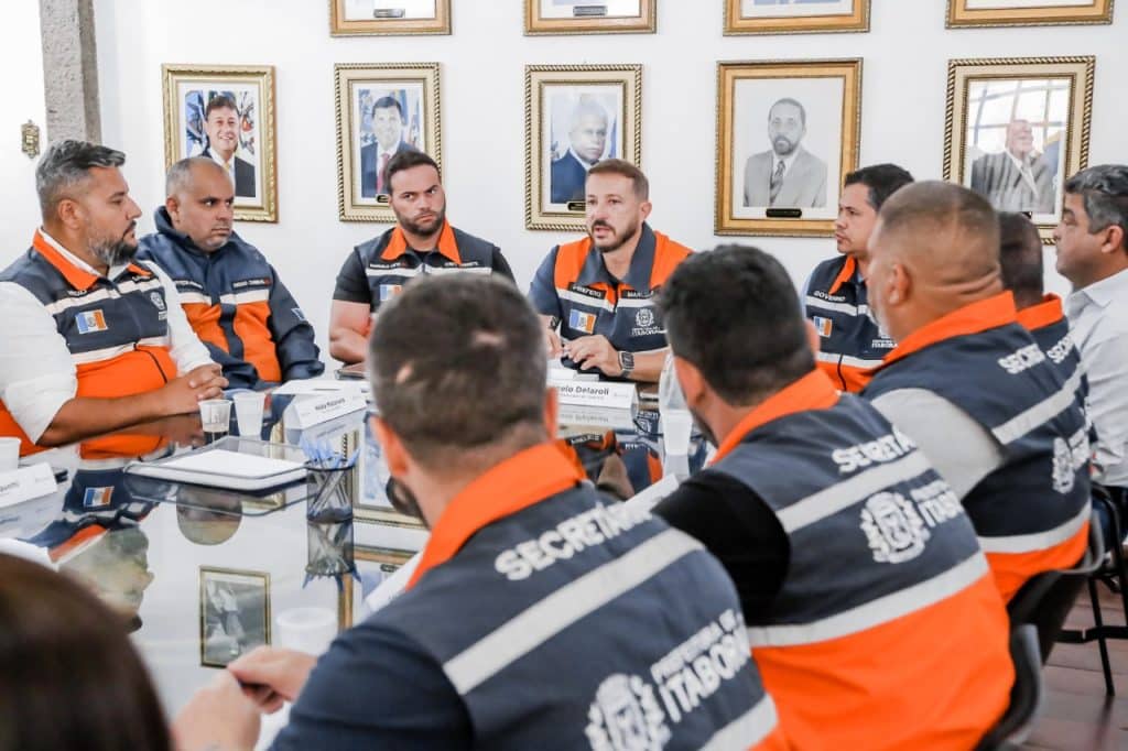 C05866A8-AC96-4B99-AC55-A60898424797Com o objetivo de alinhar estratégias de ações e definir metas para 2023, o prefeito Marcelo Delaroli reuniu o time de secretários municipais, na manhã desta sexta-feira (06/01), no Salão Nobre da Prefeitura de Itaboraí. Durante a reunião, foram apresentados os novos gestores que chegam para assumir importantes pastas, como Hédio Mataruna na Secretaria Municipal de Saúde, e Dr. Edson Xavier na Procuradoria-Geral do município.