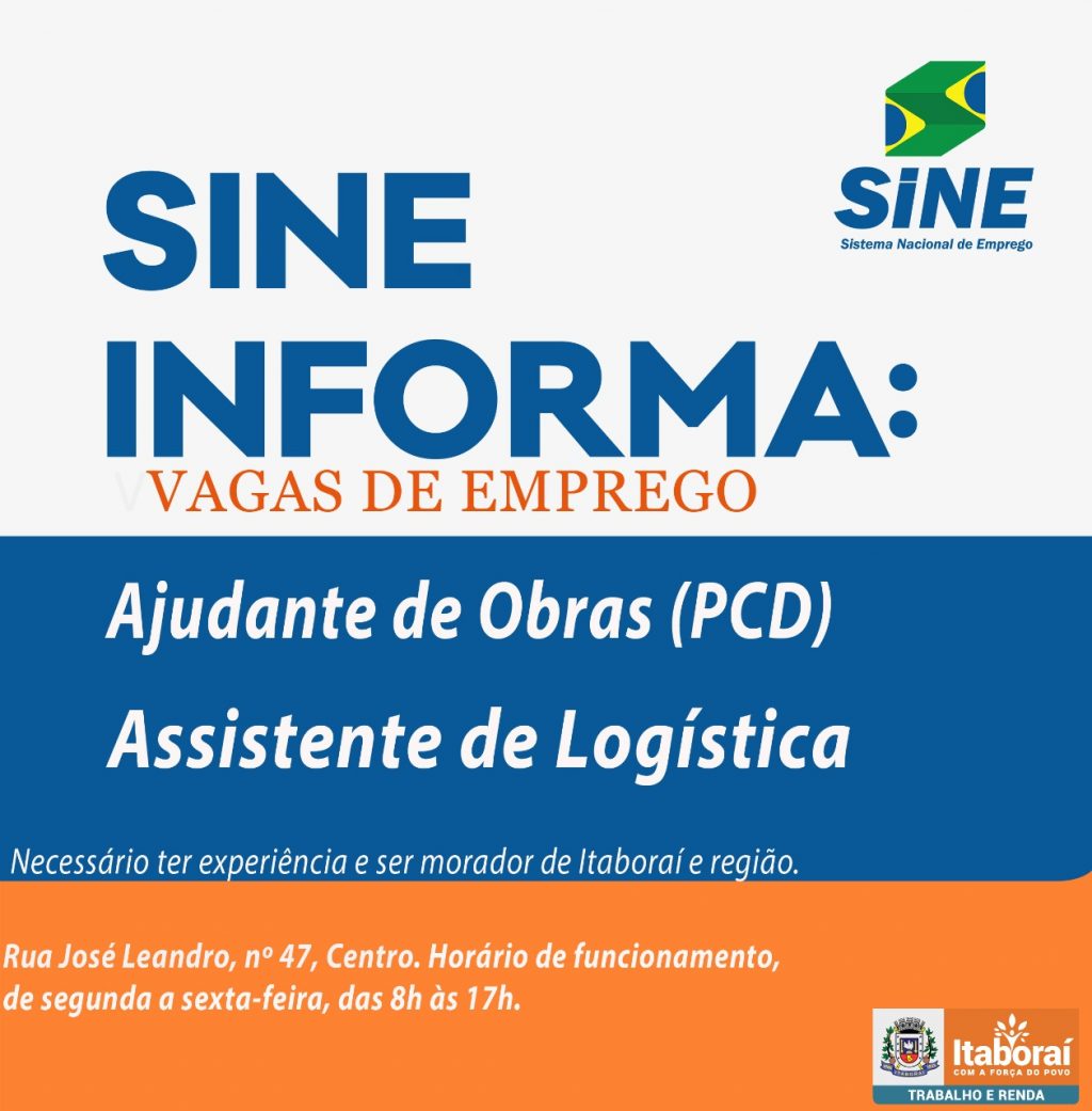 O Sistema Nacional de Empregos (Sine) de Itaboraí está com 30 vagas de empregos disponíveis a partir desta quarta-feira (27/11), com contratação imediata. Para se candidatar basta ir à unidade levando as seguintes documentações: RG, Carteira de Trabalho; Comprovante de Residência com o CEP; PIS ou Cartão Cidadão.
