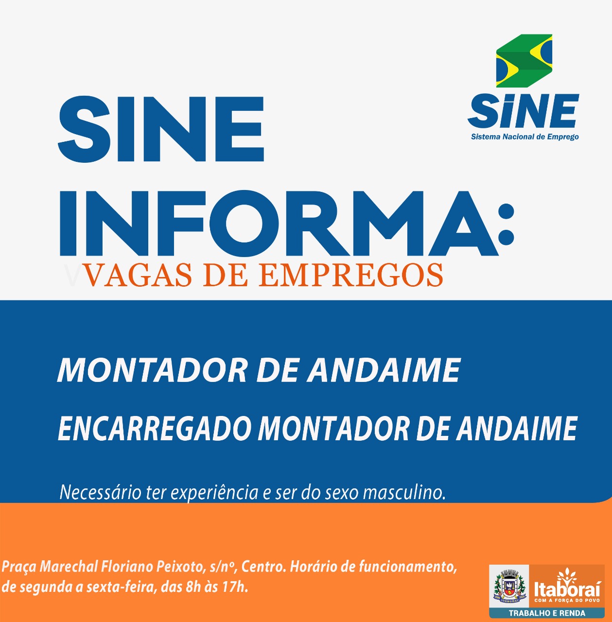 O Sistema Nacional de Empregos (Sine) de Itaboraí está com vagas de empregos disponíveis a partir desta quinta-feira (30/05), com contratação imediata. As vagas são disponibilizadas para moradores de Itaboraí.