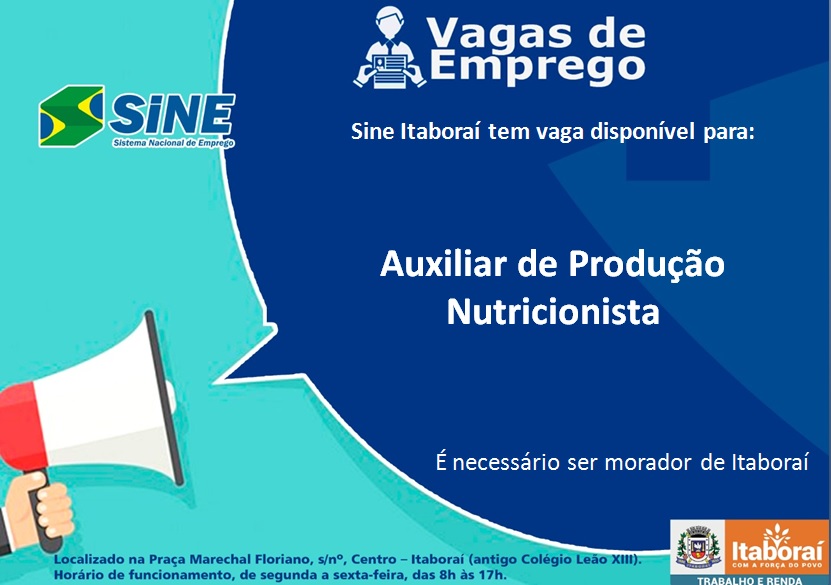 O Sistema Nacional de Empregos (Sine) de Itaboraí está com vagas de empregos disponíveis a partir desta terça-feira (15/01), com contratação imediata.