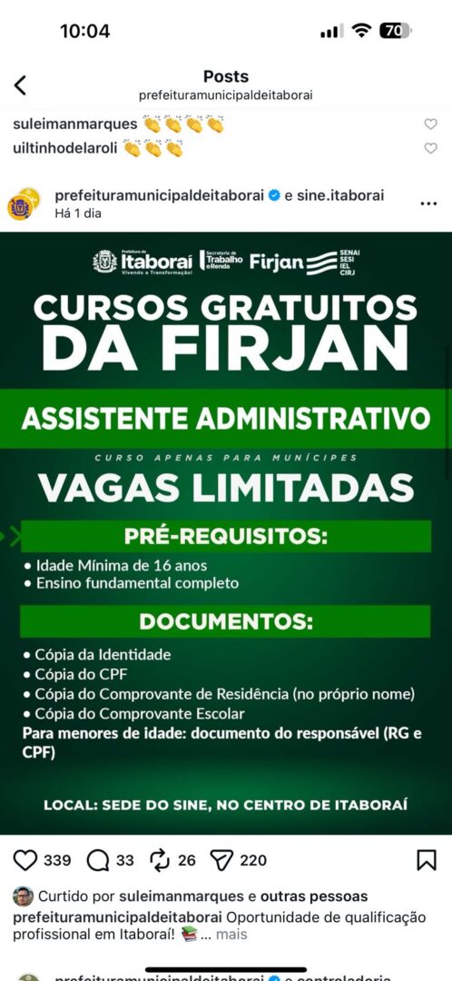 Sine Itaboraí divulga novas vagas de emprego para diferentes áreas